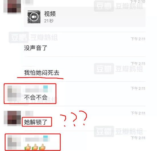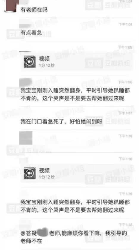下午2点10分,宝妈又往群里发了一段宝宝睡觉的视频说:「没声音了,我怕她闷死去」