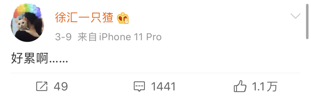 即便是欢脱独立的 Papi 酱,也从以前隔三差五就微博发个动态、聊得火热,到现在神隐后方、惜字如金,最近微博的每一个标点符号都透露出一个感受:“累”。