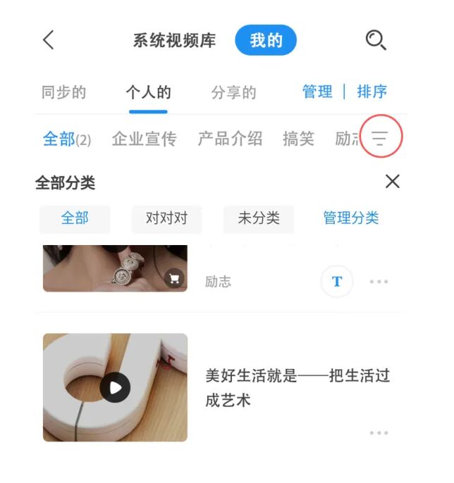 个人视频新增分类