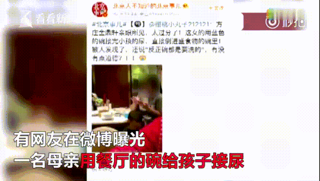 一个孩子在饭店吃饭时闹着要上厕所,结果孩子妈妈顺手直接拿起桌上的碗给孩子接尿。