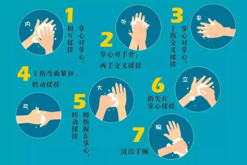 不管是大人还是宝宝在餐前便后、接触动物后,都需要按以下7大步骤洗手: