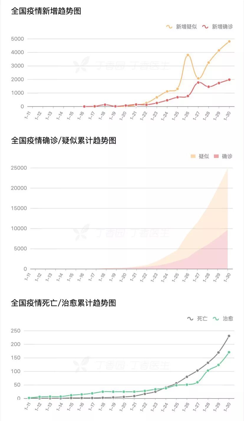 截至 1 月 31 日 12 时 20 分,全国已确诊新型病毒肺炎患者 9720 例,疑似 15238 例,死亡 213 例,治愈 176 例。