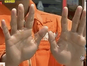 消防蜀黍用沾满橙汁的手