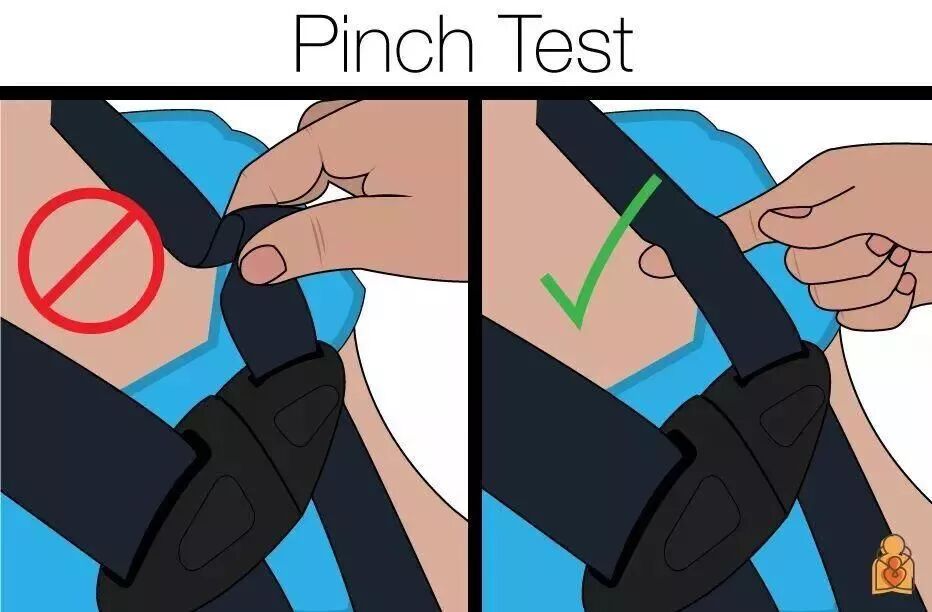 一定要检查安全带是否拉到位,最合适的程度是确保安全带紧贴宝宝胸部,以能放进一个手指头为宜。