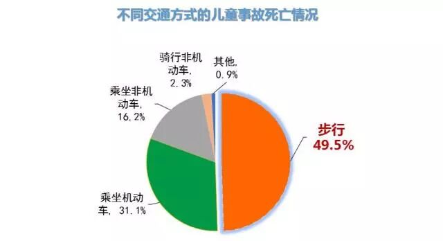 儿童步行交通方式死亡人数较多,占总数的 49.5%。