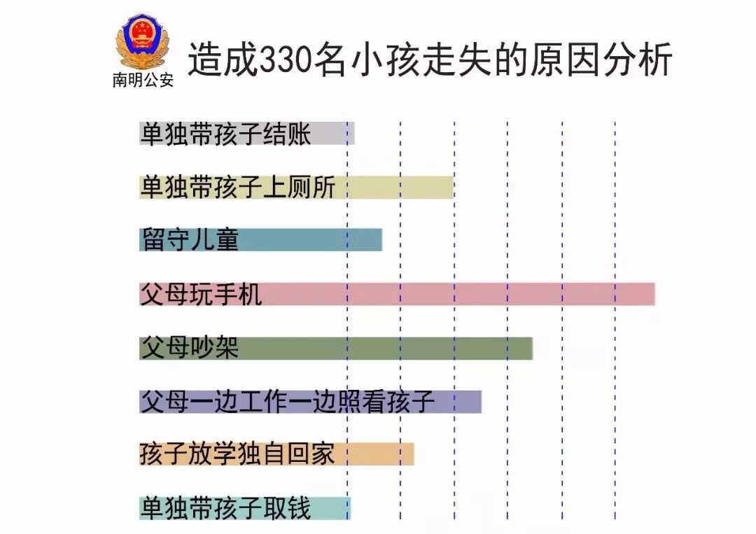 贵阳警方曾发布过一份权威调查显示,相比起被人贩子蓄意诱拐,其实孩子意外走失的概率更大,85% 以上都是因为爸妈的疏忽导致了孩子的走失。