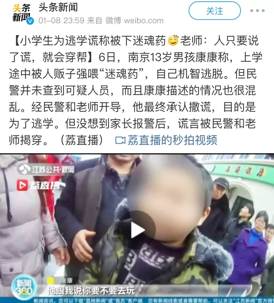 13岁男孩称自己上学途中被人贩子强喂「迷魂药」,侥幸逃脱全凭机智。