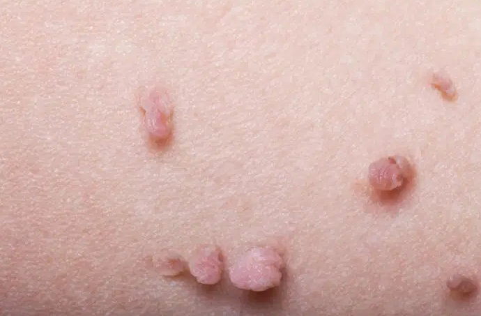 它们可以出现在身体的任何部位,但常见的地方有脖颈、腋窝、腹股沟、眼睑、大腿周围等等。