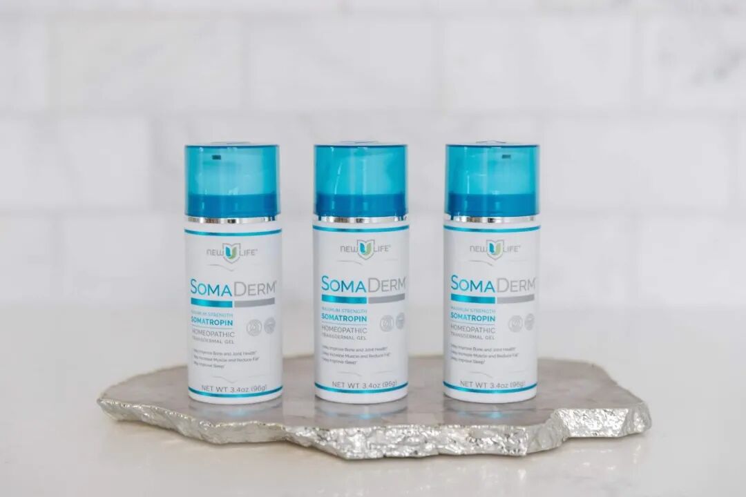 新生命 (New U Life) 推出的 SOMADERM™ 抗老凝胶是目前唯一一款透过皮肤吸收,使用超微剂量HGH (Homeopathic HGH) 的淡褐色凝胶,补充并激发脑垂体分泌自身所需之生长荷尔蒙,100%安全,100%合法,美国FDA注册,GMP认证,美国药品局7年监测,无需医生处方。
