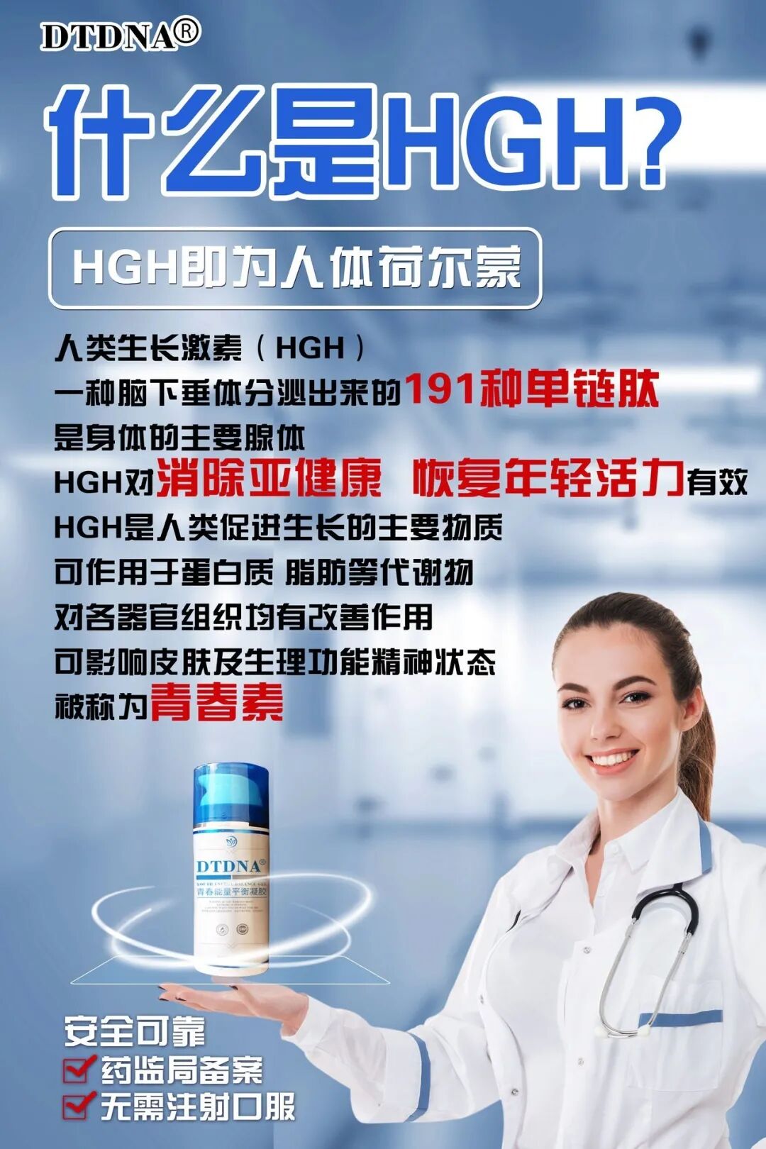 NewULife HGH凝胶:具备延缓衰老逆转衰老的功能,所以被称之为“青春素”。