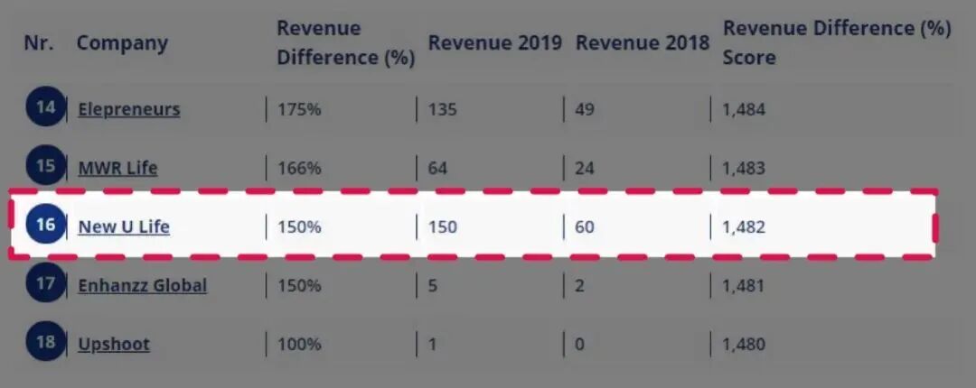 NEW U LIFE公司排名第16位,公司营业额增长高达150%。