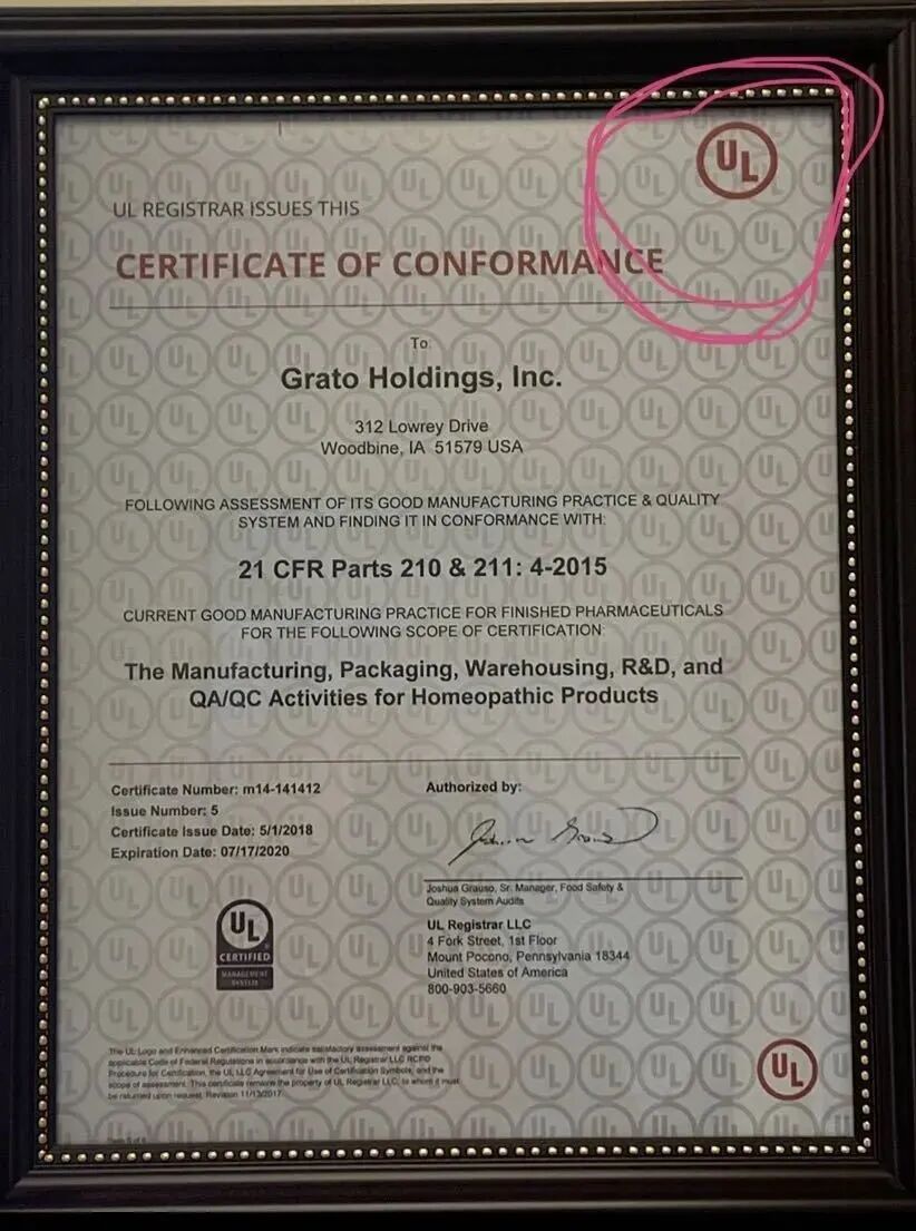 我们使用美国少数授权的顺势疗法制造工厂之一。New U Life已在FDA注册并接受不定期检查,并遵循FDA规定的所有当前良好生产规范(cGMP)。