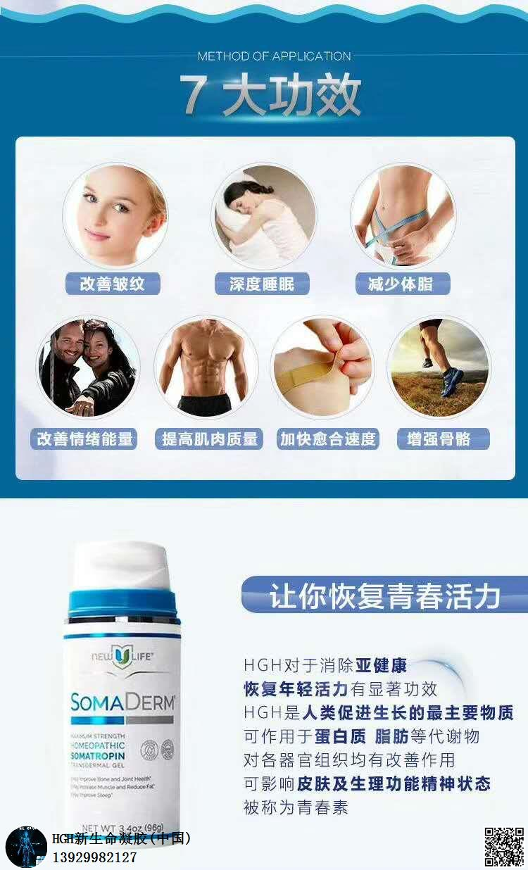 Somaderm凝胶属于生长激素。它本身的作用是通过手腕涂抹, 血液吸收后运输到我们的脑部,然后启动我们随着年龄增大而萎缩的脑垂体前叶, 有一个启动信号的意义, 让脑垂体重新分泌生长激素。