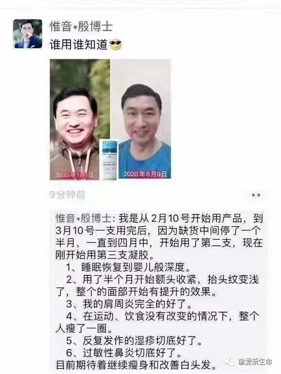 Somaderm凝胶:完全颠覆了我们传统对保健品的认知,开创了不用吃不用喝透皮吸收的黑科技产品。在美国主流市场备受欢迎与认可,已经有超过1000 家医院、超过6000名医生、数十万使用者反馈效果明显并且推广分享。无一例投诉和副作用产生,非常安全。目前国内也已经有几百名医生加盟新生命,积极推广这种全新的健康保养方式。