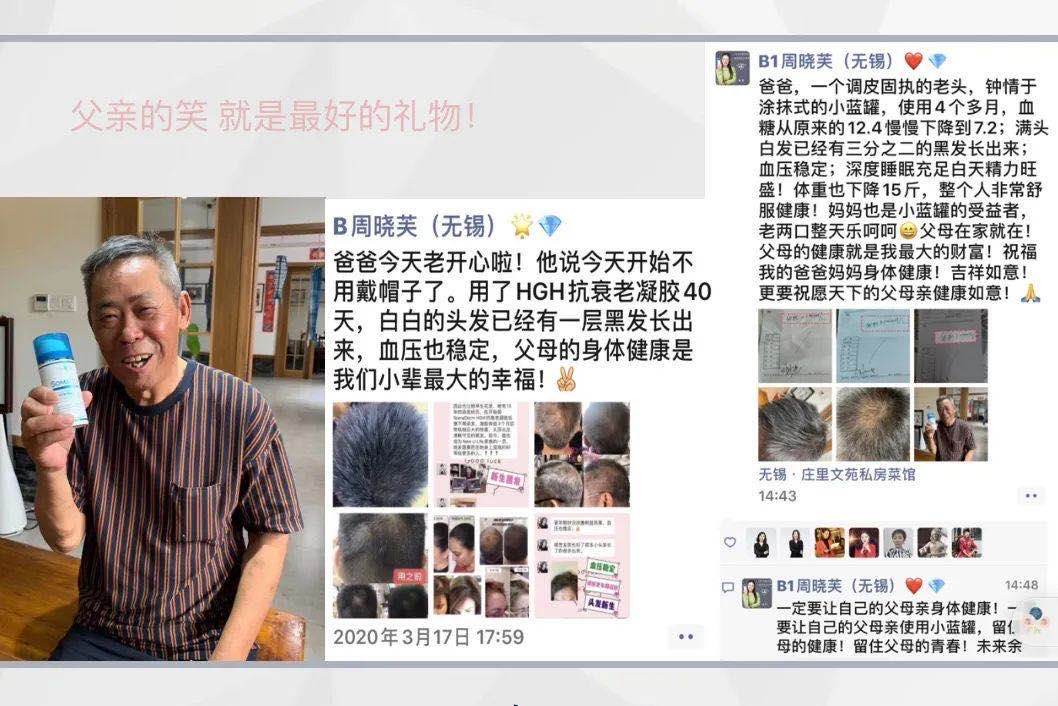 再说说我妈妈吧,使用凝胶40多天了,原来老太太经常性的失眠,夜晚十二点以后躺下是常事,半夜起夜三四次,而且起来就睡不着。使用凝胶的第一天晚上,十点多就关电视,头挨着枕头还没来得及跟我说一句话就呼呼了第二天依然如此,午睡也敢睡了而且不影响晚上的睡眠质量,半夜起夜一次或者没有。老太太满头银发在发根的地方沿着发际线长出了黑发。