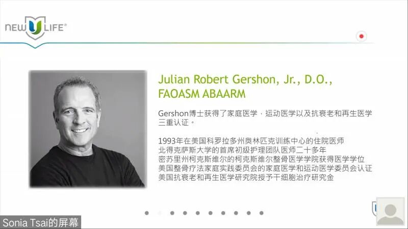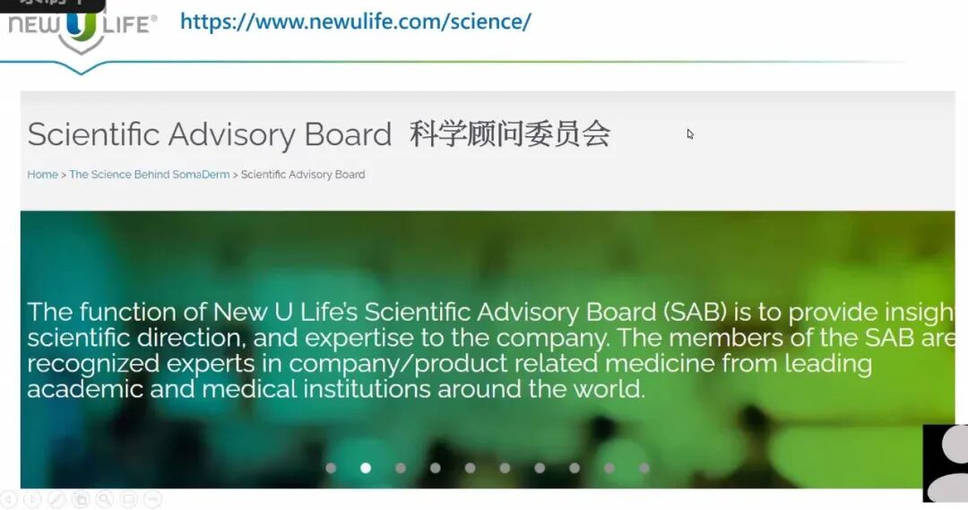接下来我来跟大家说一下产品的背景。在总部有一个科学顾问委员会,SAB。其实我们每周开会,有时候也会跟科学顾问委员会开会。他们会询问,比如公司的质量,在消费者这边的状况,是不是有更进一步的新产品的研发等等,这个都是在科学顾问委员会里会做的。当然里面的成员是非常厉害的,像这一位,大家很熟悉的Julian,他是首席的科学家。他有三重的认证,运动医学、抗衰老、再生医学,这三重认证的博士。