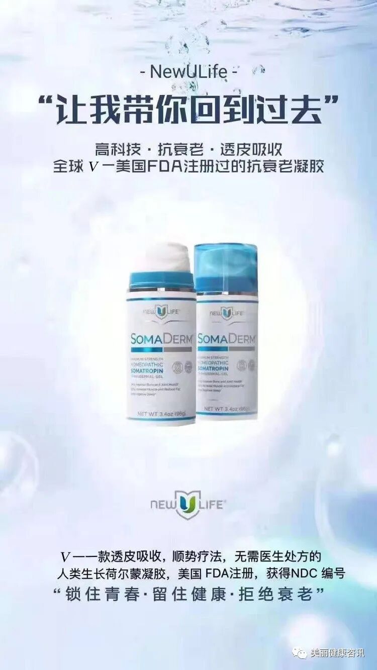 NEW U LIFE公司的SOMADERM凝胶通过涂抹方式刺激脑下垂提分泌HGH是一个健康青春的延缓。
