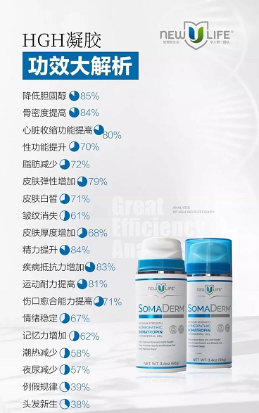 HGH不仅仅能使器官再生,重新恢复身体部分的功能,它还能重新激活人们的思维能力,逆转由老龄带来的对事物的灰蒙看法和人生观,令人感到精力充沛,更有魅力,面貌焕然一新。你会说:"我再也不老了"。