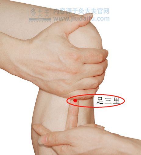 足三里穴位于小腿前外侧,当犊鼻下3寸,距胫骨前缘一横指,按压有明显的酸涨感。