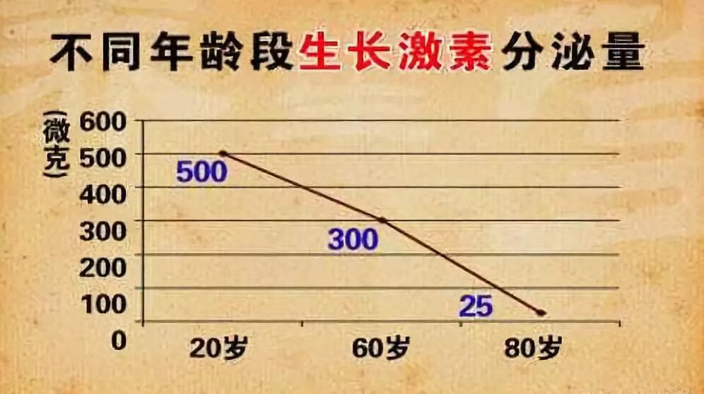 HGH的分泌量随着年龄而减少,儿童时分泌量最多18岁达到一年中的顶峰,从21岁以后每年以1.5%的速度下降,細胞蛋白质合成能力续渐下降,包括皮肤、骨格、肌肉、心、肝、肾、肺和大脑在內的组织和器官功能续渐下降和委宿衰老也遇见到来,30岁时HGH的分泌量已经降到18岁的70%,60岁时而不足儿童的10%。