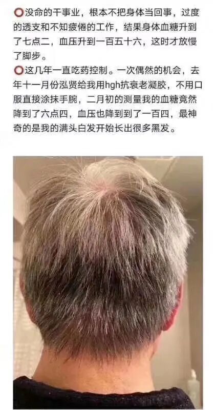 2019年11月开始使用产品,血糖血压改善、黑发新生,被产品效果打动,