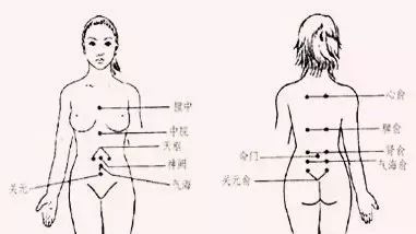 艾灸穴位:脾俞、肾俞、神阙、命门、涌泉穴。