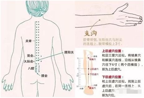 艾灸取穴:大肠俞穴、天枢穴、支沟穴、上巨虚穴。同时,针对虚性便秘,气虚:加灸气海穴;气血两虚:加灸足三里穴;气阳两虚:加灸太溪穴。