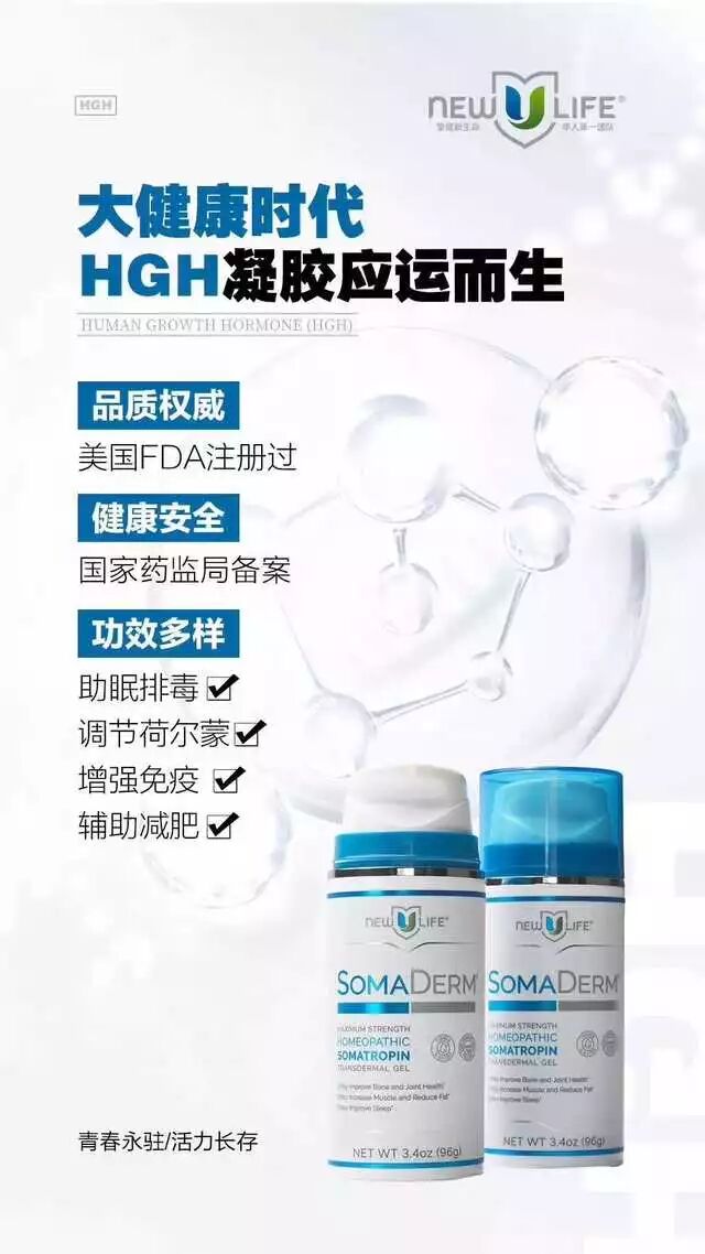 New U Life是一家美国公司,目前首发产品Somaderm HGH凝胶(人体生长荷尔蒙)这款产品已经在美国的各大药房销售了17年了,售价320美金。2018年初开始这款产品从线下拿到了线上,以网络营销的模式开始试运营,2019年5月3号在美国的达拉斯正式开业。在只开放美国一个国家,2018年一年销售50万瓶并超过6千万美金的营业额。正式营业后到2019年五月份单月做到1千3百万美金。