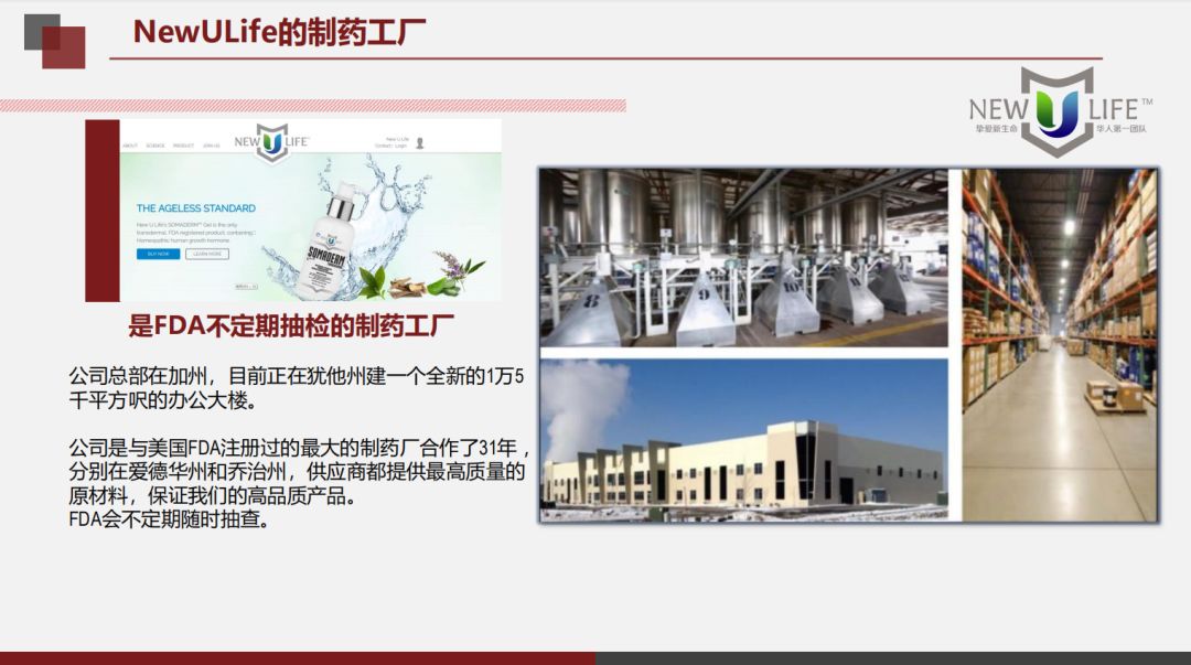 New U Life新生命公司专门使用FDA注册的生产设施,遵守所有FDA法规。产品一致性和可靠性。