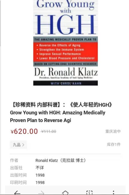 1998年美国抗衰老医学院院长克拉兹博士就出版了《HGH使人活得更年轻》这本珍稀资料,并把新生命凝胶收录在内。