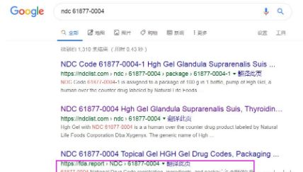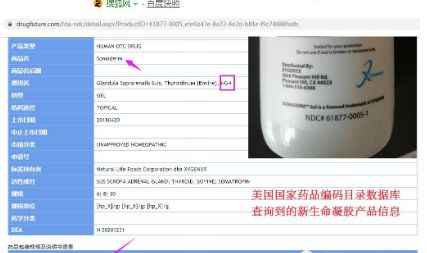 美国国家药品编码目录数据库查询的新生命凝胶产品信息。