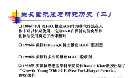 1996年世界上最权威的食药监局美国FDA批准荷尔蒙HGH相关产品可用于食品,化妆品等。