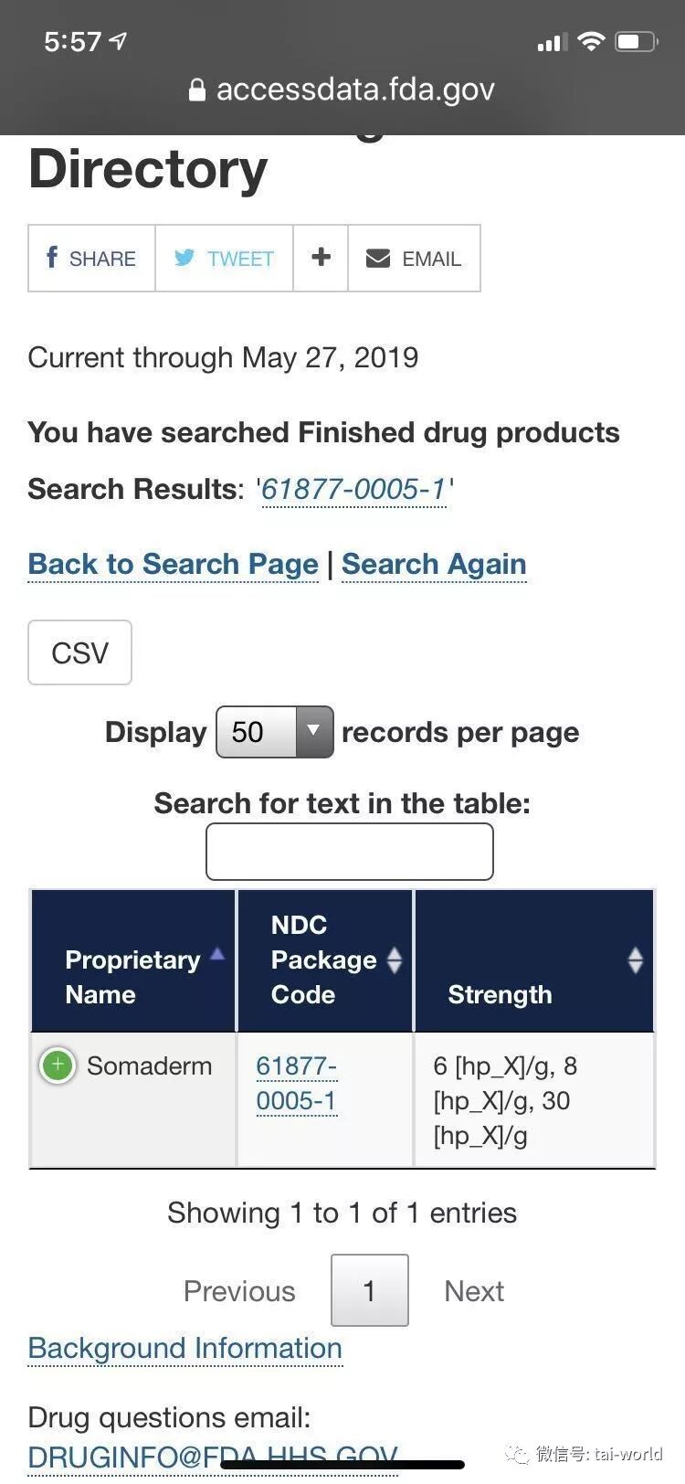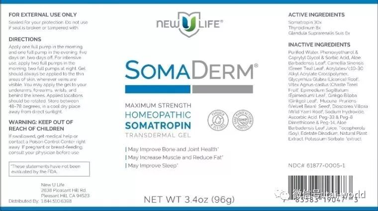我又去做了这个产品的相关调查,看到了这款Somederm HGH凝胶是美国FDA注册,并且获得NDC CODE,这个需要FDA7年的调查时间才可以拿到这个号码,并且要100%没有坏报告和对人体无任何副作用。了解了产品的权威和安全性,可以放心使用了。