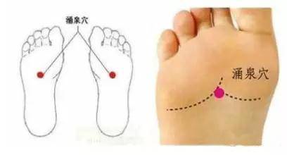 位置:涌泉穴位于足底前部凹陷处,第2、3趾趾缝纹前端与足跟连线的前处,左右脚各有一穴。