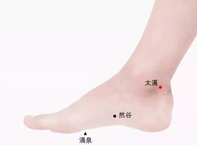 定位:位于足内侧,内踝后方与脚跟骨筋腱之间的凹陷处。也就是说在脚的内踝与跟腱之间的凹陷处。双侧对称,也就是两个。