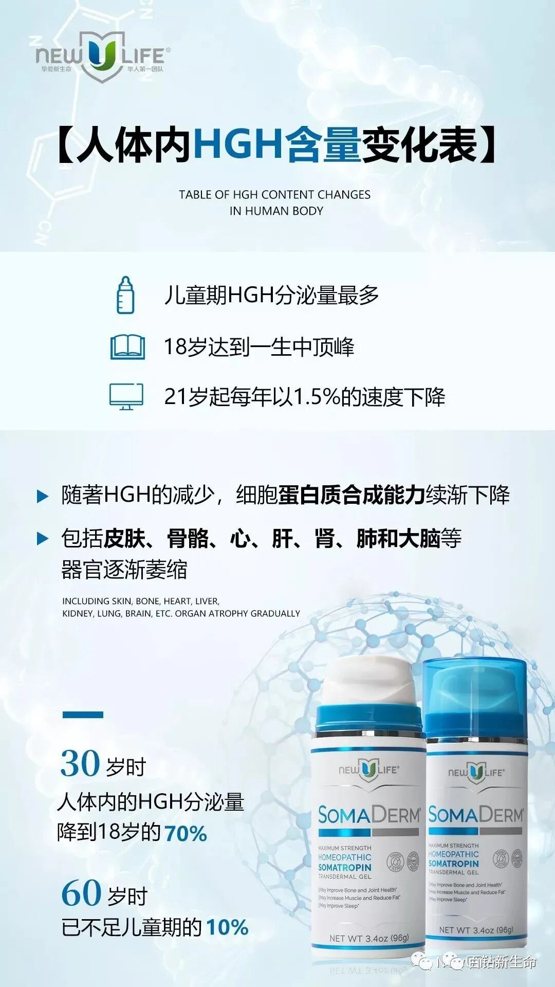 (Human Growth Hormone)即人体生长激素,生长荷尔蒙,是脑垂体分泌的一种氨基酸组成的活性多肽。主控人体的生长发育、免疫调节和三大物质的代谢,而长期有效的补充HGH,使人体激素水平维持在年轻时的分泌状态,能够恢复精力,延缓衰老。