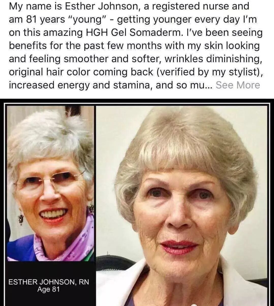 81岁高龄的护士Ester Johnson,调侃说自己每天都在变的更年轻。对于她来说,最大的改变是头发,慢慢在变回原来的颜色,脸色跟身上的皱纹也在变浅,皮肤也变得更光滑,柔软。乐呵呵的推荐她闺蜜跟身边很多朋友在使用。