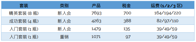为配合中国大陆的长远发展,以下为中国跨境电商专属的入会套装和重销套组价格。