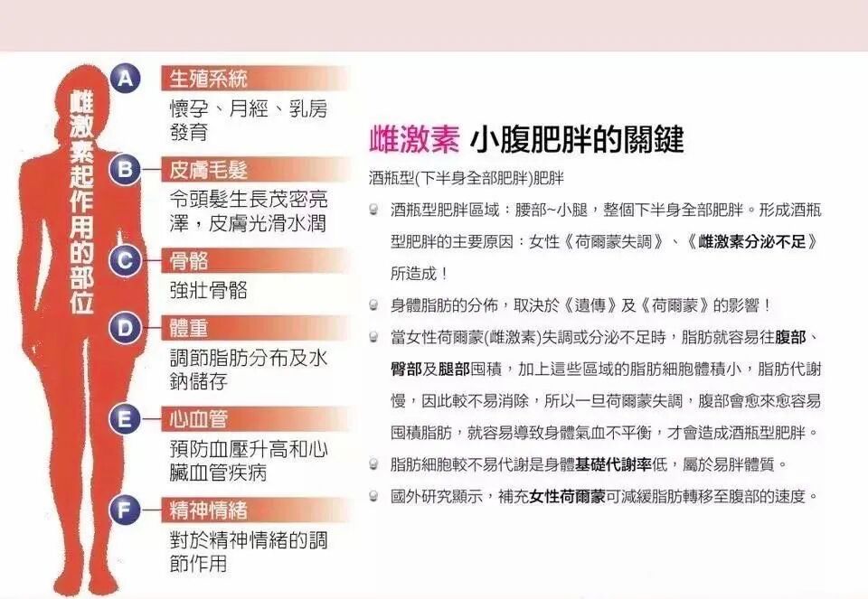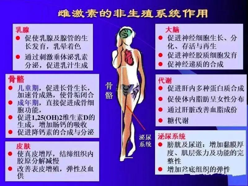 雌激素不仅是女性的生理激素,更是女人的青春激素和健康激素。女人一旦雌激素减少,皮肤就会变得粗糙,皱纹早生,骨骼松脆,脂肪也会增加。
