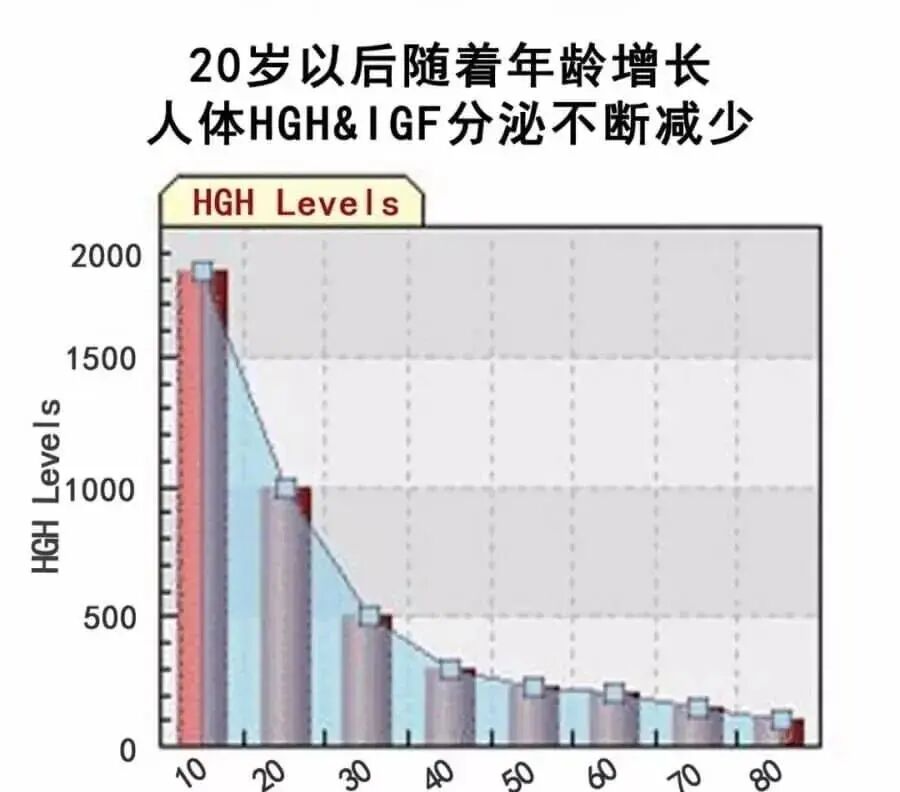 比如一位60岁的老年人每天所分泌的HGH含量只剩20岁时的25%而已。