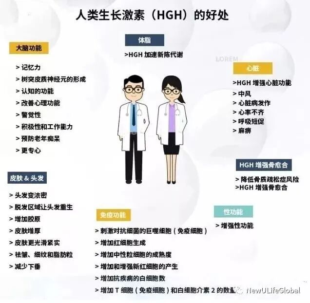 科学家在1950s就发现了生长激素,但是到1980s才实现实验室合成生长激素,很快,生长激素就成了一种非常流行的,改善运动水平的药物,也曾一度被很多运动员使用。 美国反老化医学院院长——朗诺∙克兹博士在一份研究报告中指出:人类在21-22岁是青春的颠峰时期,也是分泌系统功能最顶峰的时期,之后荷尔蒙分泌以每10年下降15%的速度逐年减少。荷尔蒙的减少影响到其它系统的运作,使身体所有器官的功能下降。