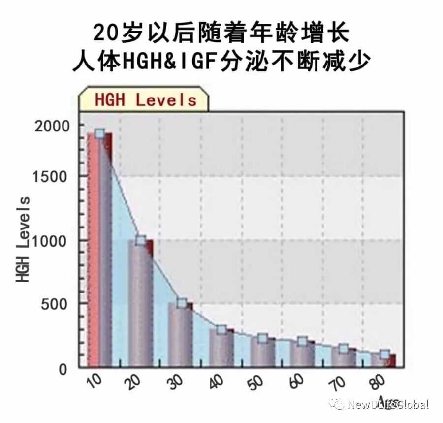 人类生长素(HGH ,即Human Growth Hormone)是人脑垂体前叶分泌的一种蛋白质。 对于调节细胞代谢,增强细胞活性,控制细胞基因复制和蛋白质合成,人体损伤组织修复,维持大脑和免疫系统的正常功能,发挥重要作用。 人体生长素在青春期时的分泌量是最旺盛的,随着年龄的增长,分泌量开始下降。 比如一位60岁的老年人每天所分泌的HGH含量只剩20岁时的25%而已。 人体生长激素在熟睡后和运动时分泌最为旺盛。人体生长素不只是防止生理的老化,亦可逆转许多老化的症状。