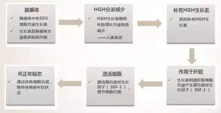 科学家们发现,人体生长激素随着年龄的增长而分泌量趋于减少。HGH每天分泌量20岁的年轻人达到顶峰,HGH随着年龄增加而衰减,因此补充人体生长激素是能够增强免疫系统的功能达到长寿目的关键。