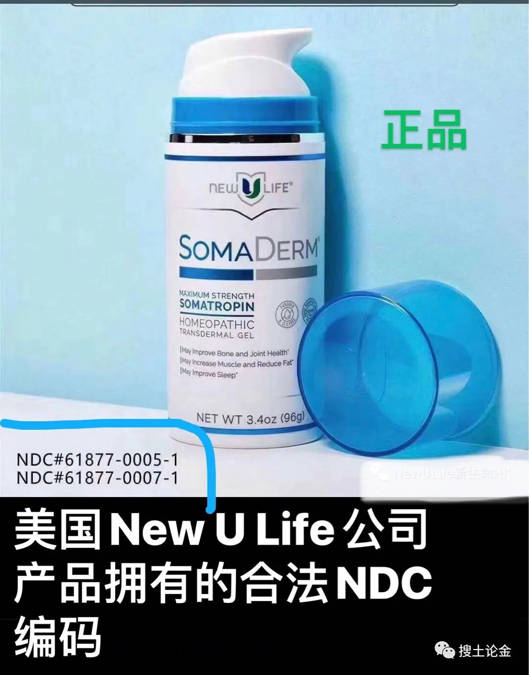 美国新生命公司New U Life的产品 somaderm凝胶在2020年不断扩展全球市场,让更多的顾客见识到我们全球唯一一款拥有美国国家药典NDC编号的保健品!并且得到全球消费者的美誉!但是公司目前发现市场上出现了很多仿品和假货!在这里我向大家展示一下,以便真伪!还是那句话不要贪小便宜!关键是花了钱没有效果,那就得不偿失!如果再发生副作用造成生命危险那就更不值得了!