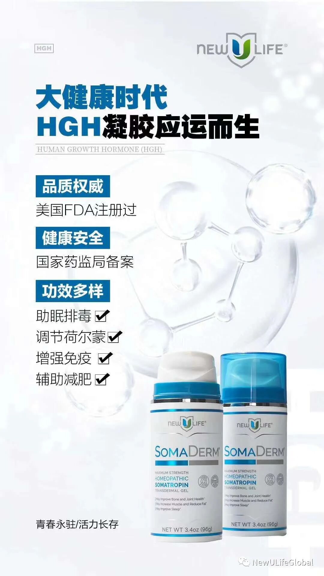 SOMADREAM凝胶是唯一一款经FDA注册顺势疗法透皮, 非处方,人类生长荷尔蒙产品,由于荷尔蒙存储在脂肪组织层中,SOMADREAM凝胶始终应用于皮肤的薄薄区域, 通过静脉血管微量吸收到血液中,有手腕, 肘窝, 腋下, 膝盖后,每次涂抹一个对应的位置,一天涂抹两次。
