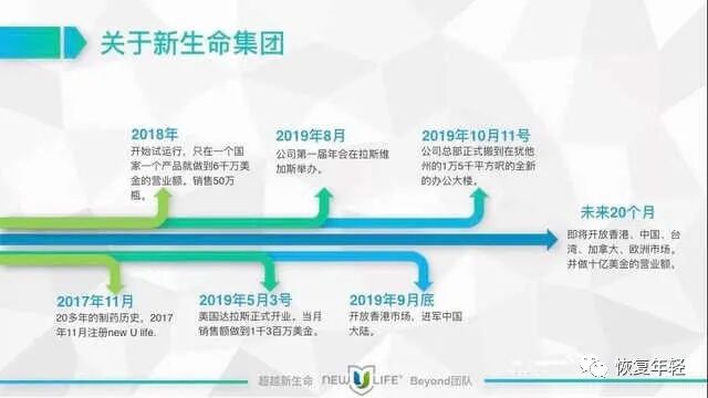 New U Life新生命公司的前身是美国一家26年的制药的公司2017年11月27日正式启用 New U Life公司名称及品牌并进入跨境电商领域发展。
