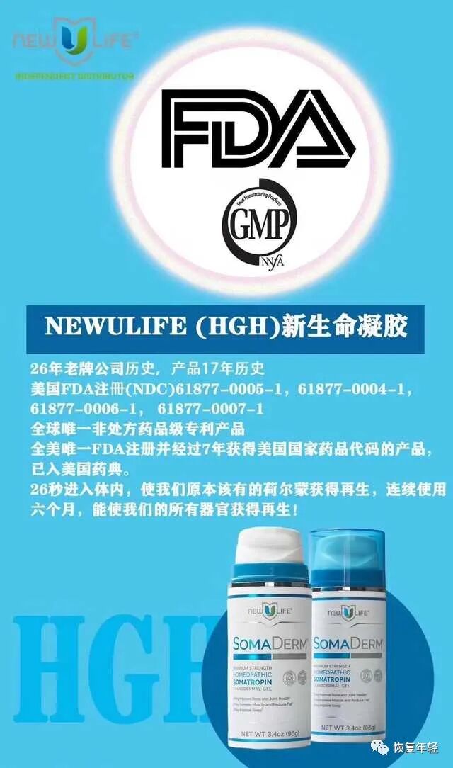 Somaderm凝胶在全球是唯一一款经透皮吸收、获得FDA注册、含有顺势疗法的人体生长素产品。