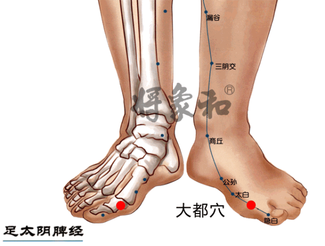 脾经大都穴相当于补钙要穴。(这个位置也是颈椎反射区。)