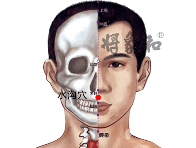按压人中(水沟穴)可以调血气,阴阳结合,人就能醒。