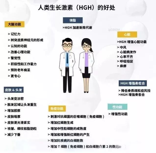 我们说人类生长荷尔蒙会刺激我们的胸腺,让我们已经萎缩的胸腺回到年轻的时候的大小,那么胸腺是分泌T细胞的主要的腺体,那我们身体的T细胞多,我们就健康,我们抵抗防御的细胞就多。我们的免疫力就会提升啊,所以HGH是我们人类必不可少的一个非常非常重要的一个荷尔蒙。